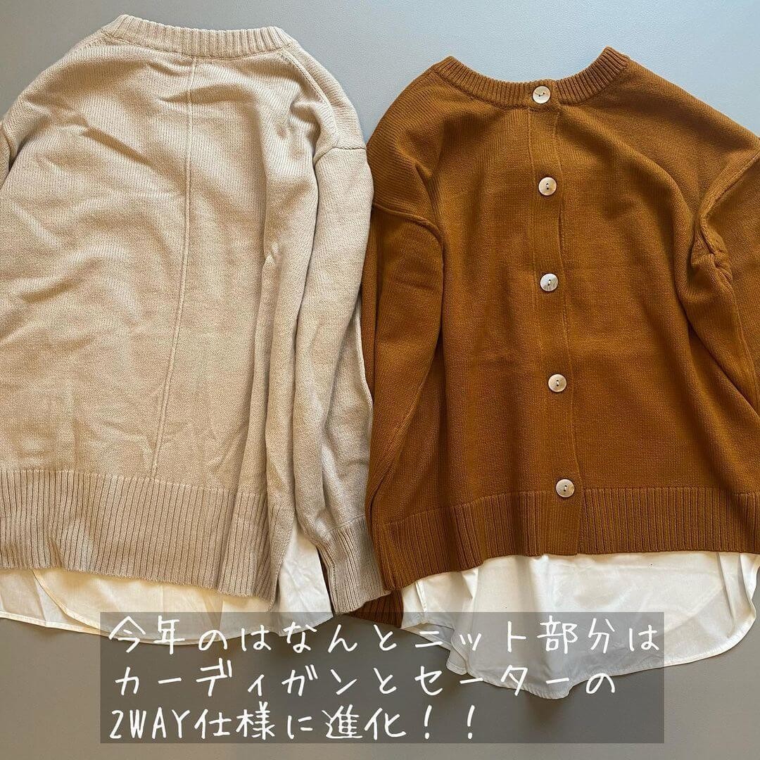 今年のアップデートポイントは、ニット部分がカーディガンとしても使える2WAY仕様になっています。
