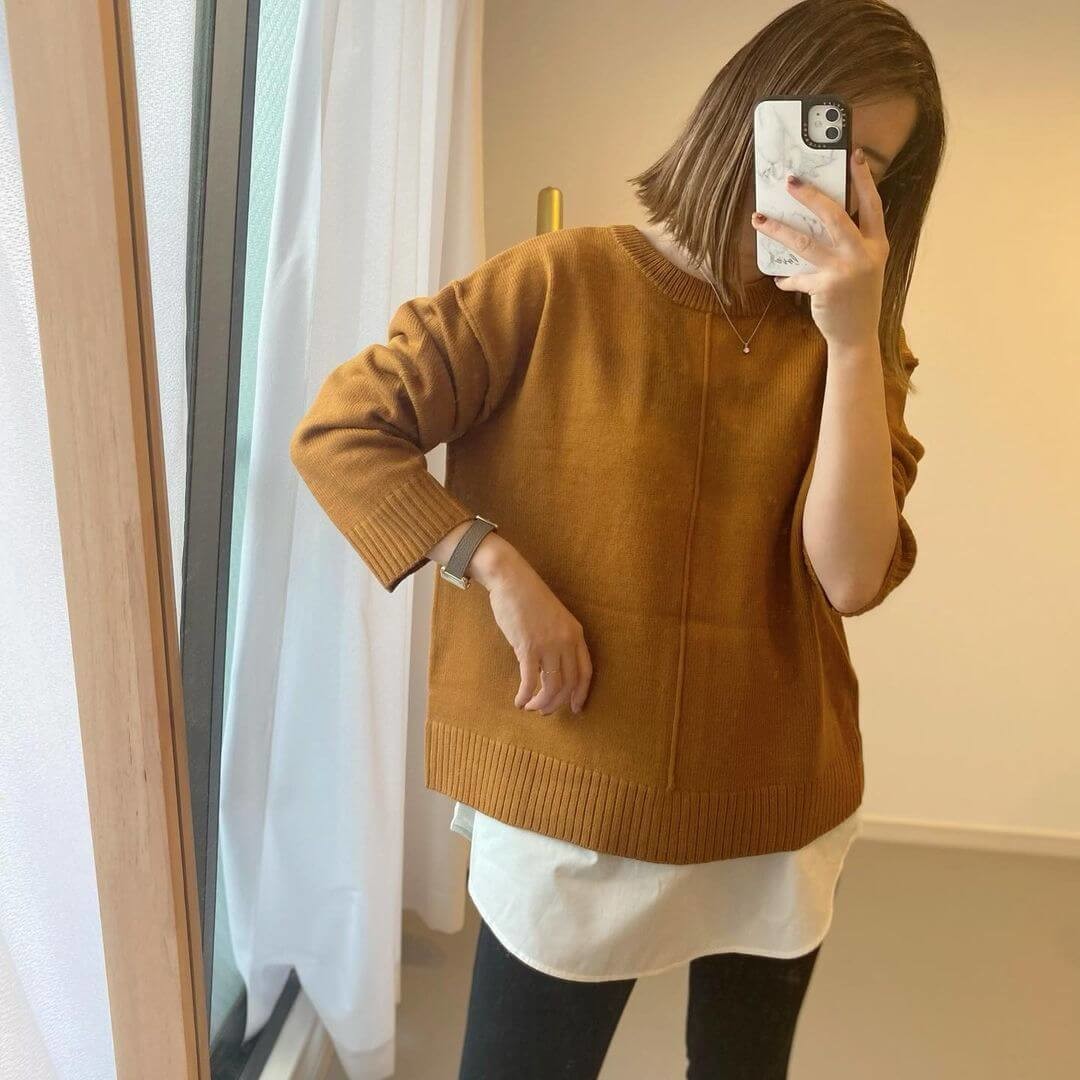 GUからにシャツテールコンビセーターに注目して、ファッショニスタのアレンジに併せてご紹介しました。