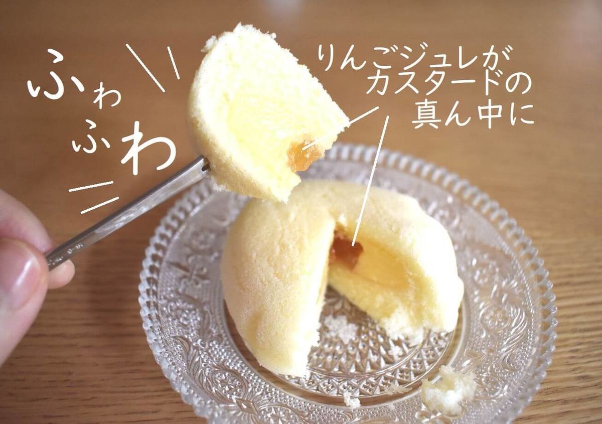中身はカスタード餡で、その真ん中に「りんごジジュレ」というか「りんごジャム」のようなソースが入っていました。