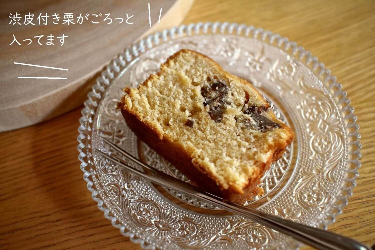 ひとくち食べると、パウンドケーキのバターの香りと栗のほのかな香りがマッチしておいしい。