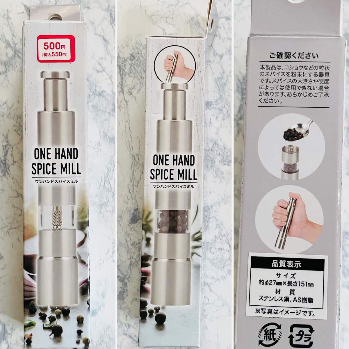 ダイソーで税込550円で発売されたワンハンドスパイスミルです。