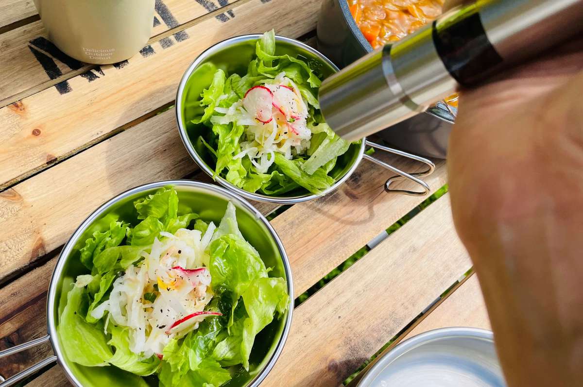 デイキャンプに持って行ったので、ランチタイムのサラダに使用してみました。やはり食事の準備中に片手だけで削れるのは嬉しいですね。