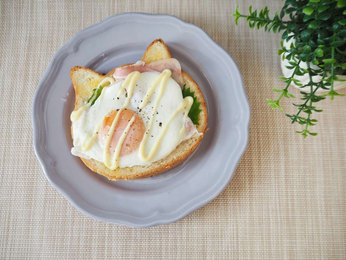 朝ごはんに、ねこねこ食パンをオープンサンドにアレンジしてみました。