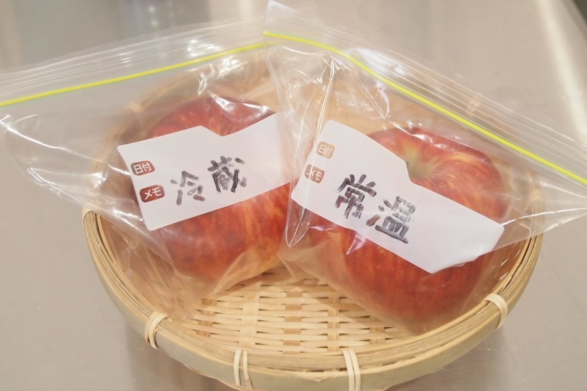 では実際に冷蔵庫で保存したりんごと、常温で保存したりんごの違いを比較し、食べ比べていきたいと思います!
