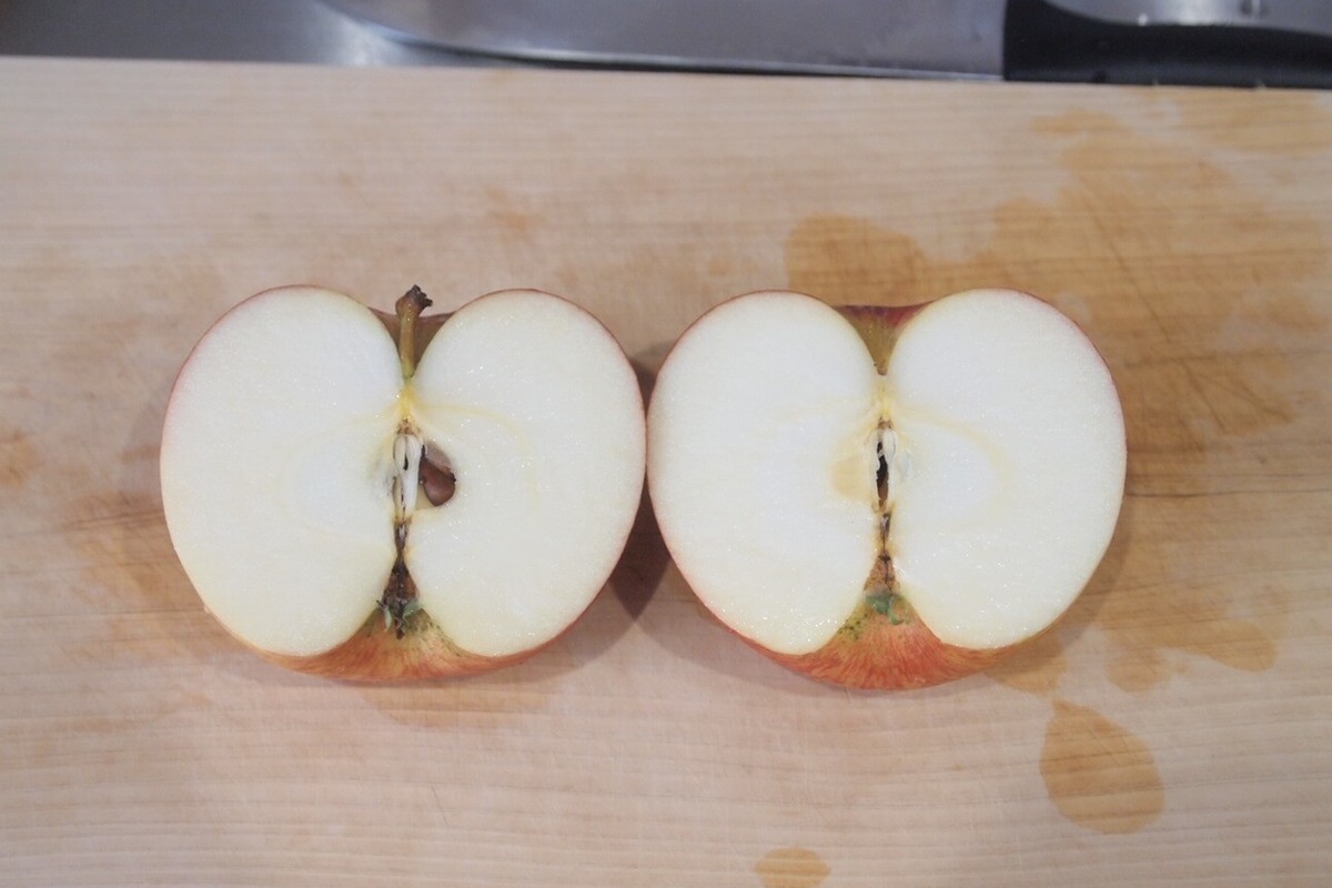 別々で食べていれば、そこまで違いに気づかなかったかもしれませんが、比べてみるとその甘さの違いは歴然!野菜室に入れておいたりんごは、みずみずしく甘さが強く感じました。