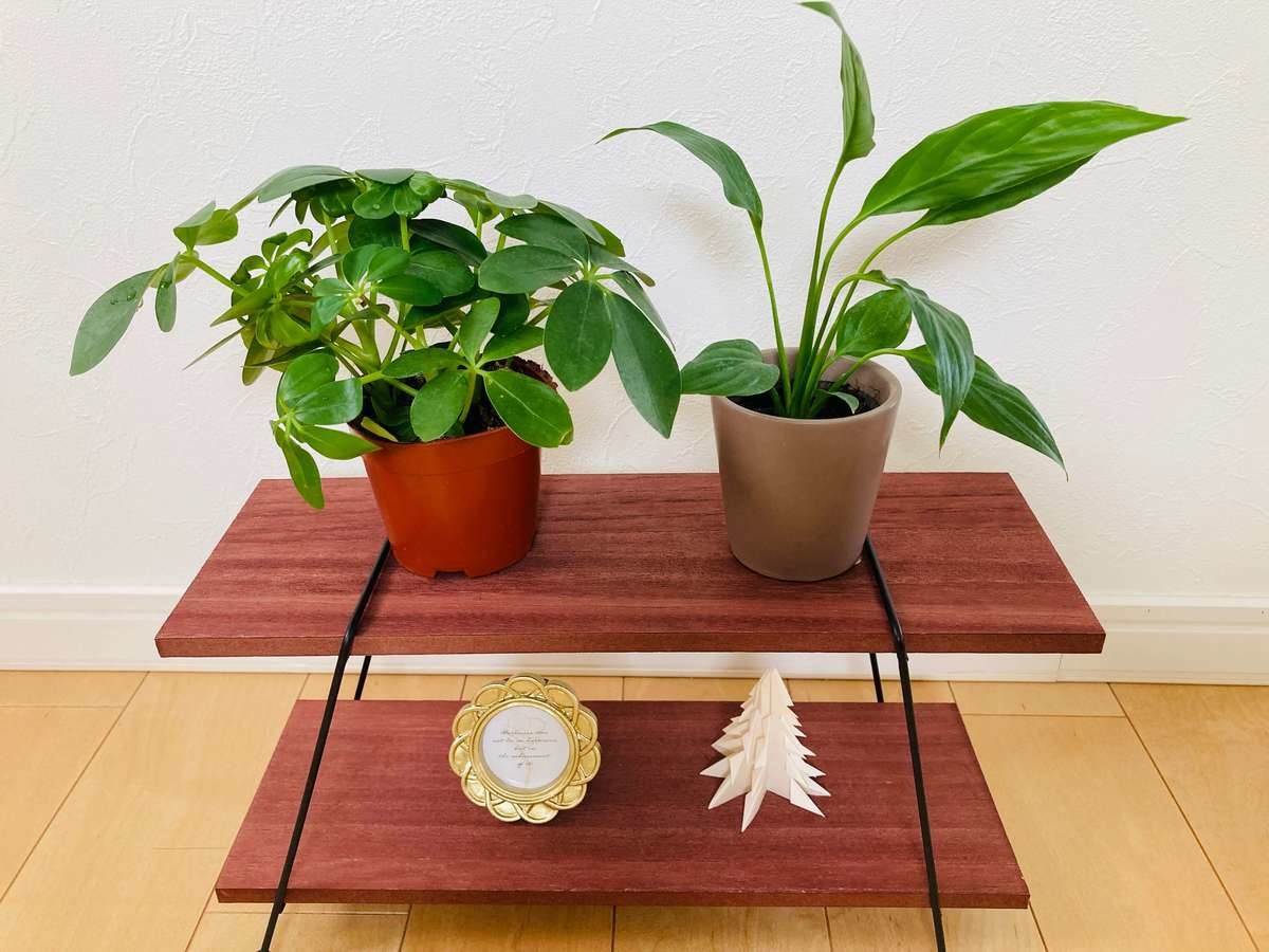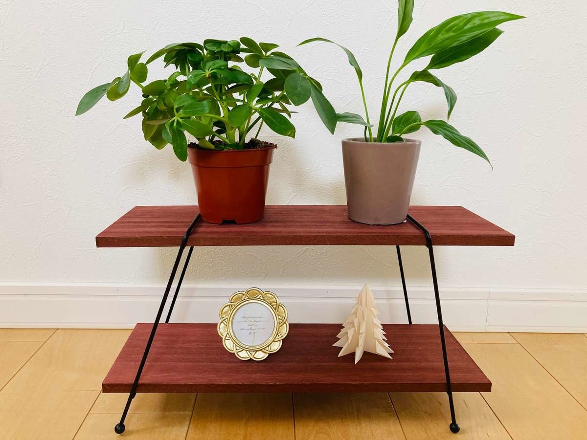ただし上の棚にアイアンの差し込み口があるので、置く場所が制限されるところがちょっぴり残念でした。棚の横幅は約20cmと小ぶりなので、小さめの観葉植物やディスプレイ用小物に使ってくださいね。