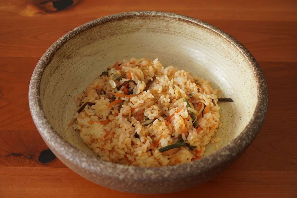 容量が2人分なので多めに作り、半分はビビンバに、もう半分はおにぎりにしてその日の夜や翌日に食べることもできます。