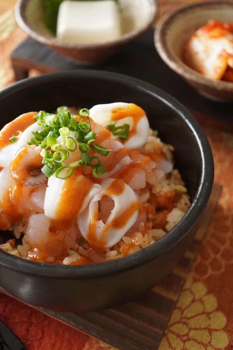 「かけだれ」はやや辛みがあり味が濃いので、かけだれをかけて食べる場合は湯通ししたシーフードミックスをプラスするのがおすすめです。