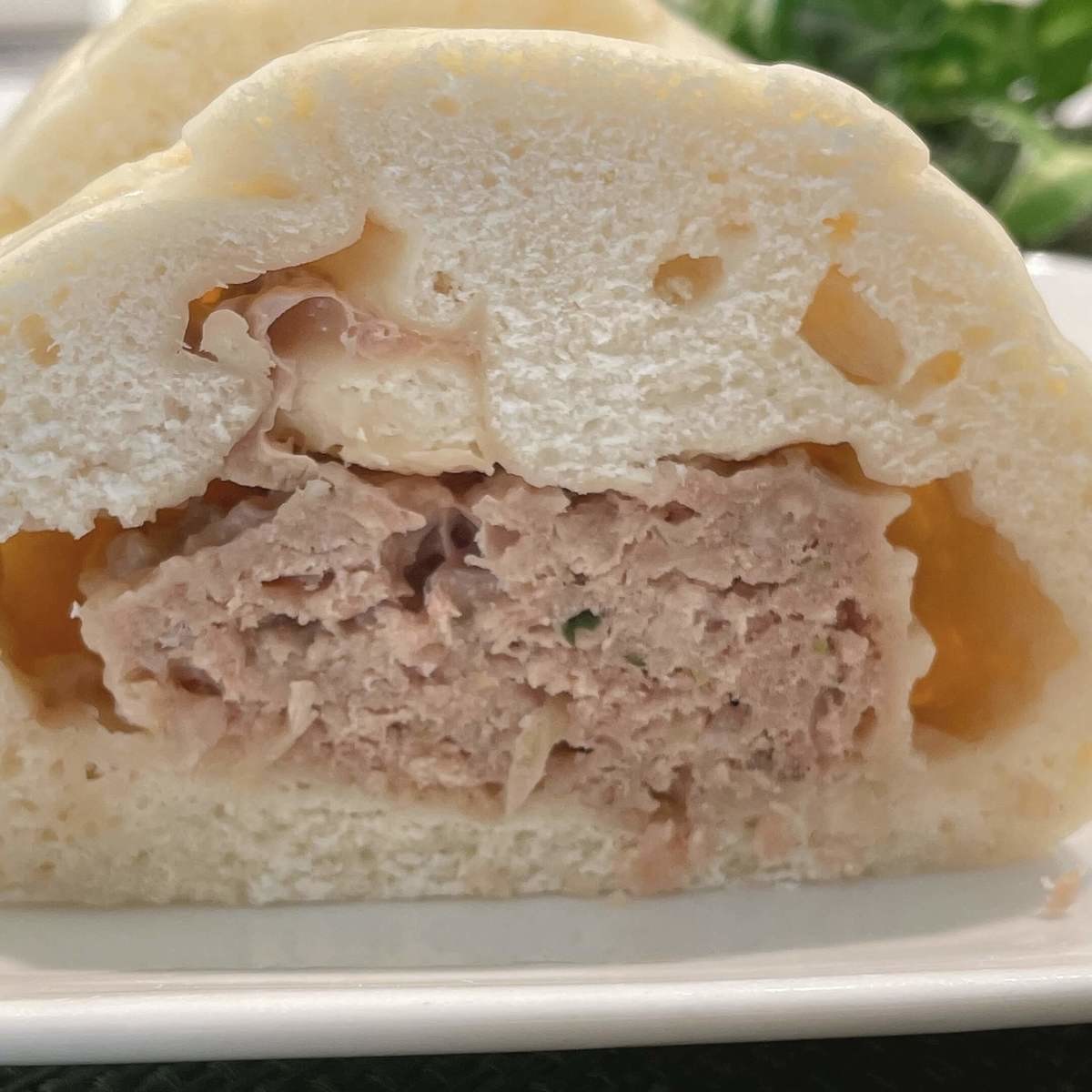 この肉まんの中身は以前買ったものに比べてだいぶ色が薄いです。