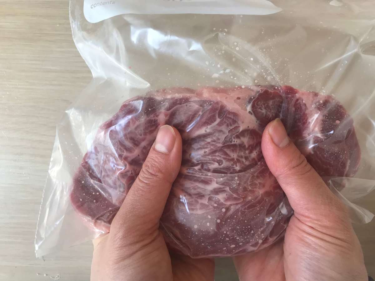 冷蔵室から取り出したとき、すでにお肉が柔らかくなっているのが分かりました。これは期待大!