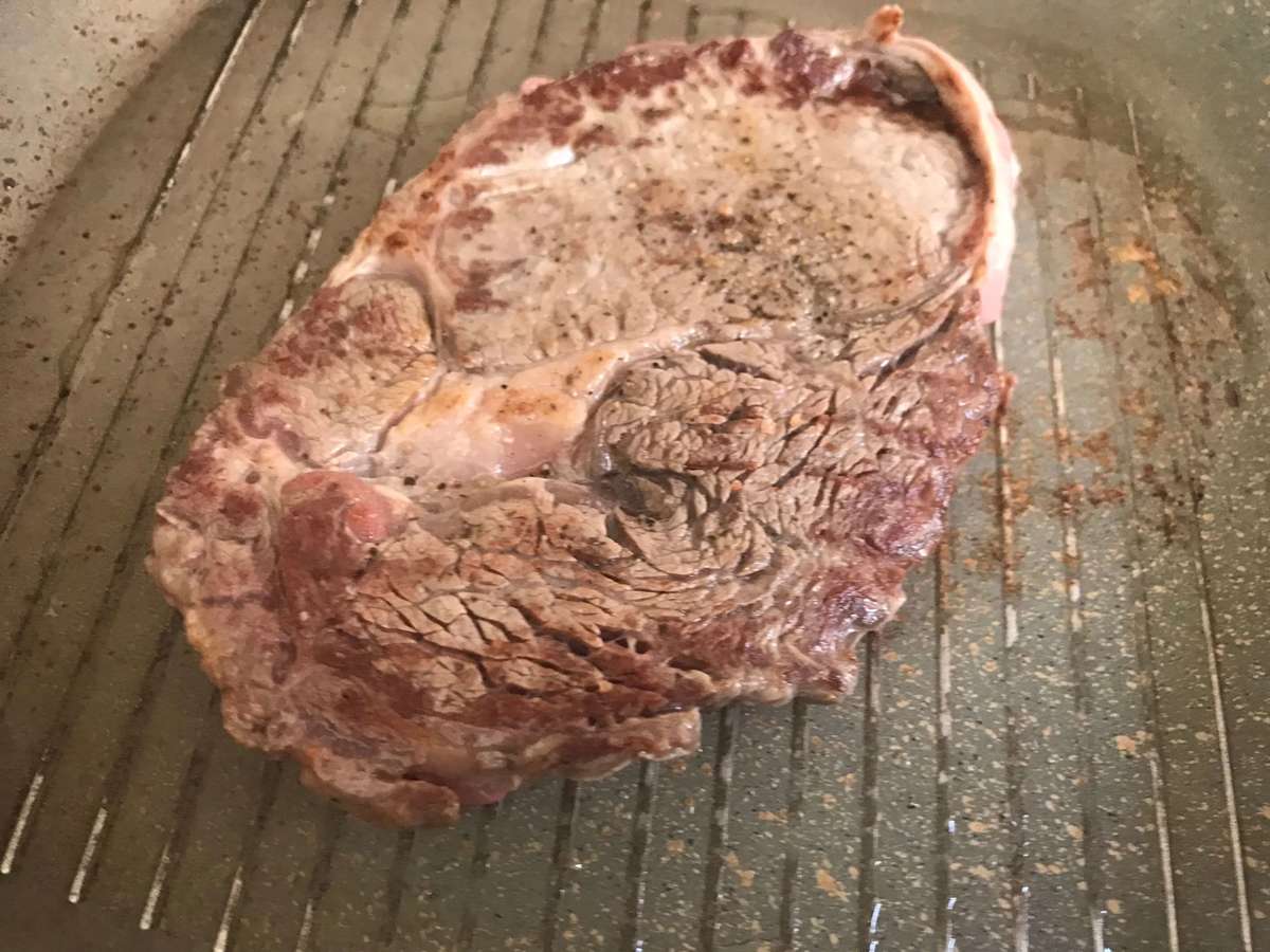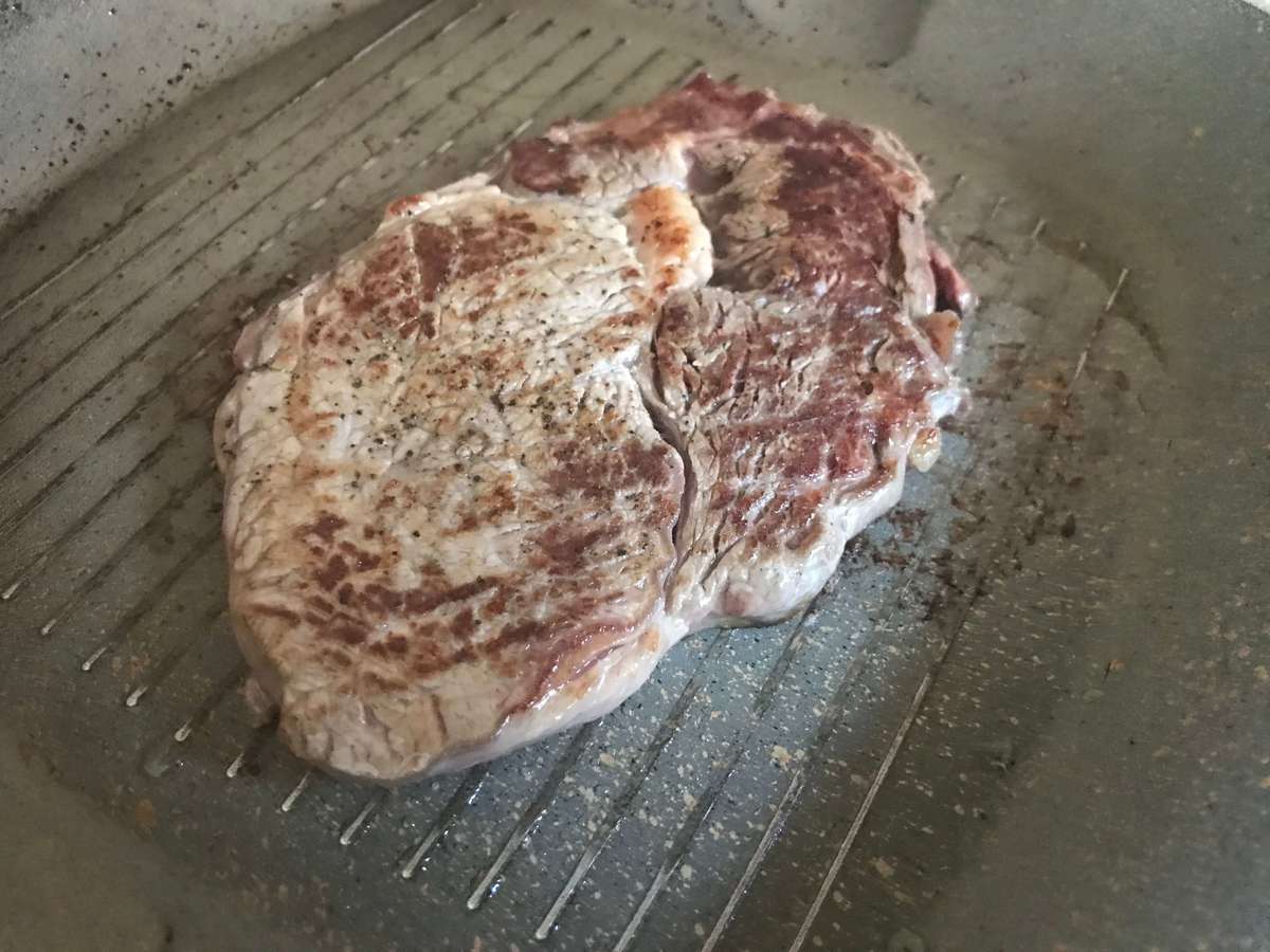 スーパーのステーキ裏ワザ④塩コショウしフライパンで強火で焼く