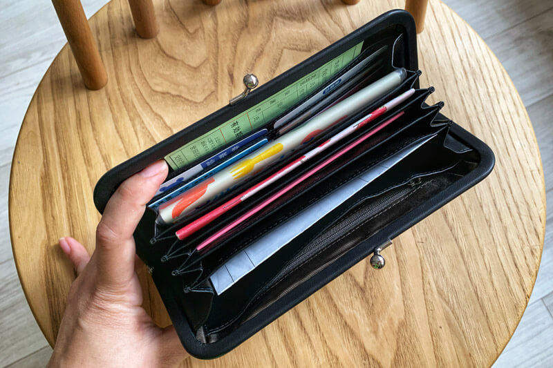 「この貴重品ケースは、がま口でガバッと大きく広げて中を見ることができるので、何が入っているか一目で分かるので、病院の受付でもモタモタせずに済みます。