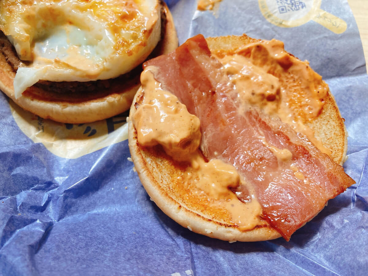 追加料金はかからないので、増量無料でソースたっぷりの月見バーガーが堪能できます♪