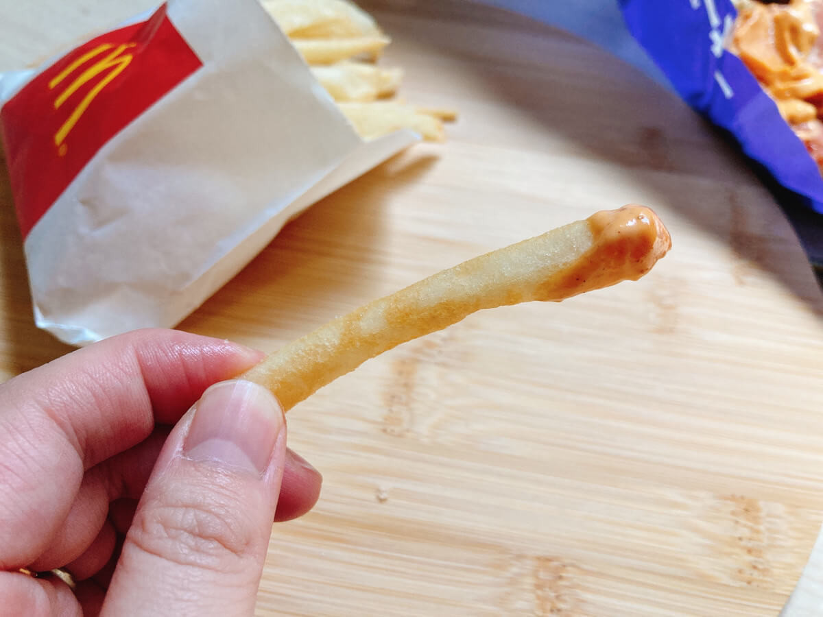 ソースにディップして食べると、美味しいポテトがさらに止まらなくなりますよ!