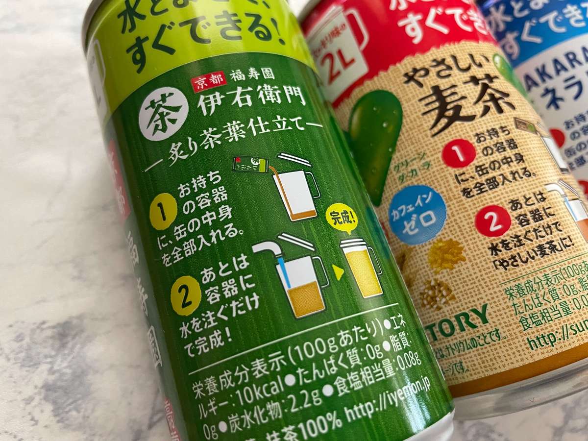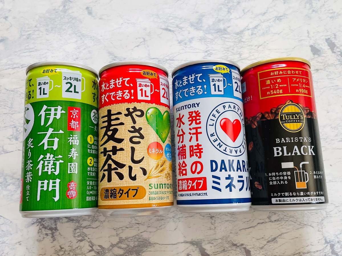 缶だと水出しパックに比べ値段が高いのが難点ですが、ペットボトルより安く直ぐに飲み物が必要な時、あっという間に作れる濃縮タイプの缶は便利です。