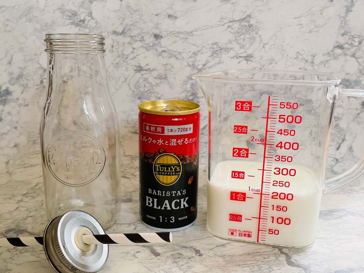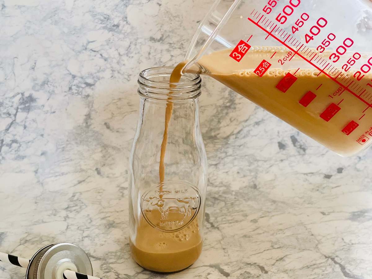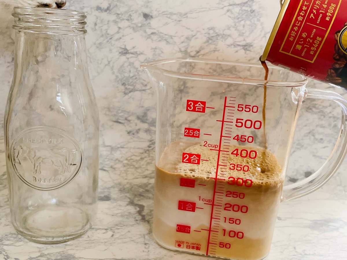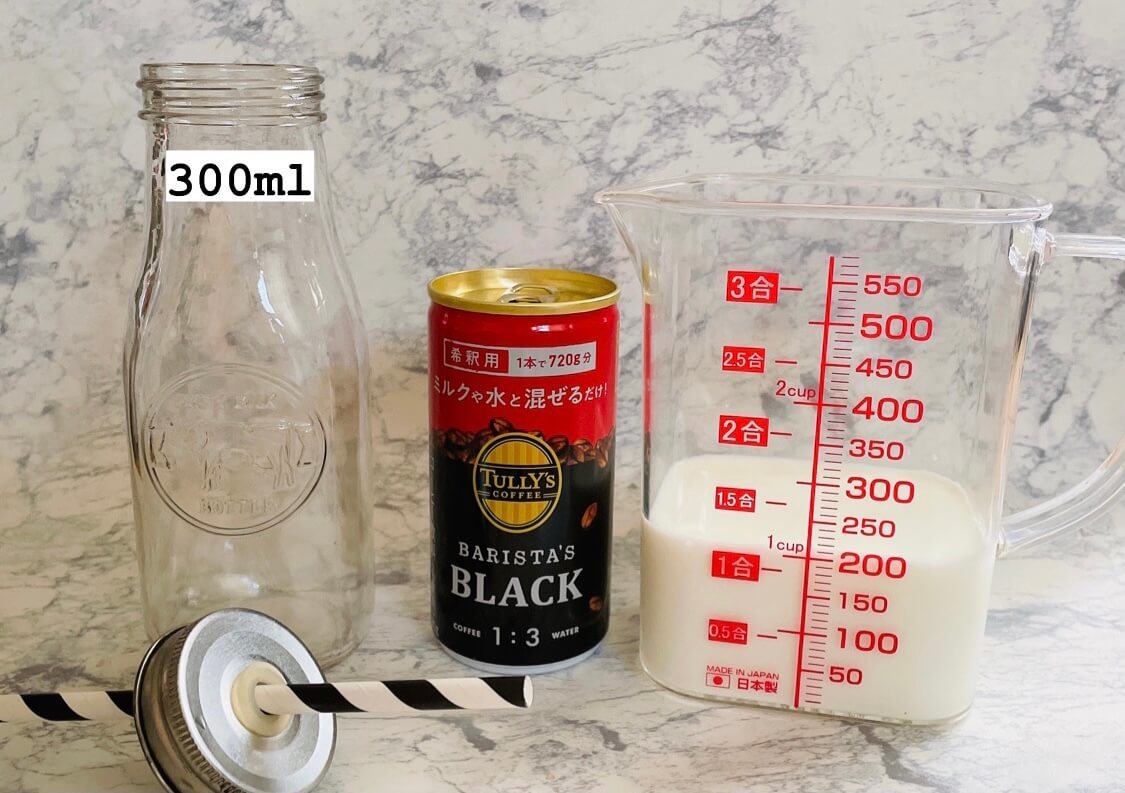 300ml入る瓶に移してお風呂屋さんで飲むコーヒー牛乳気分でいただきます。