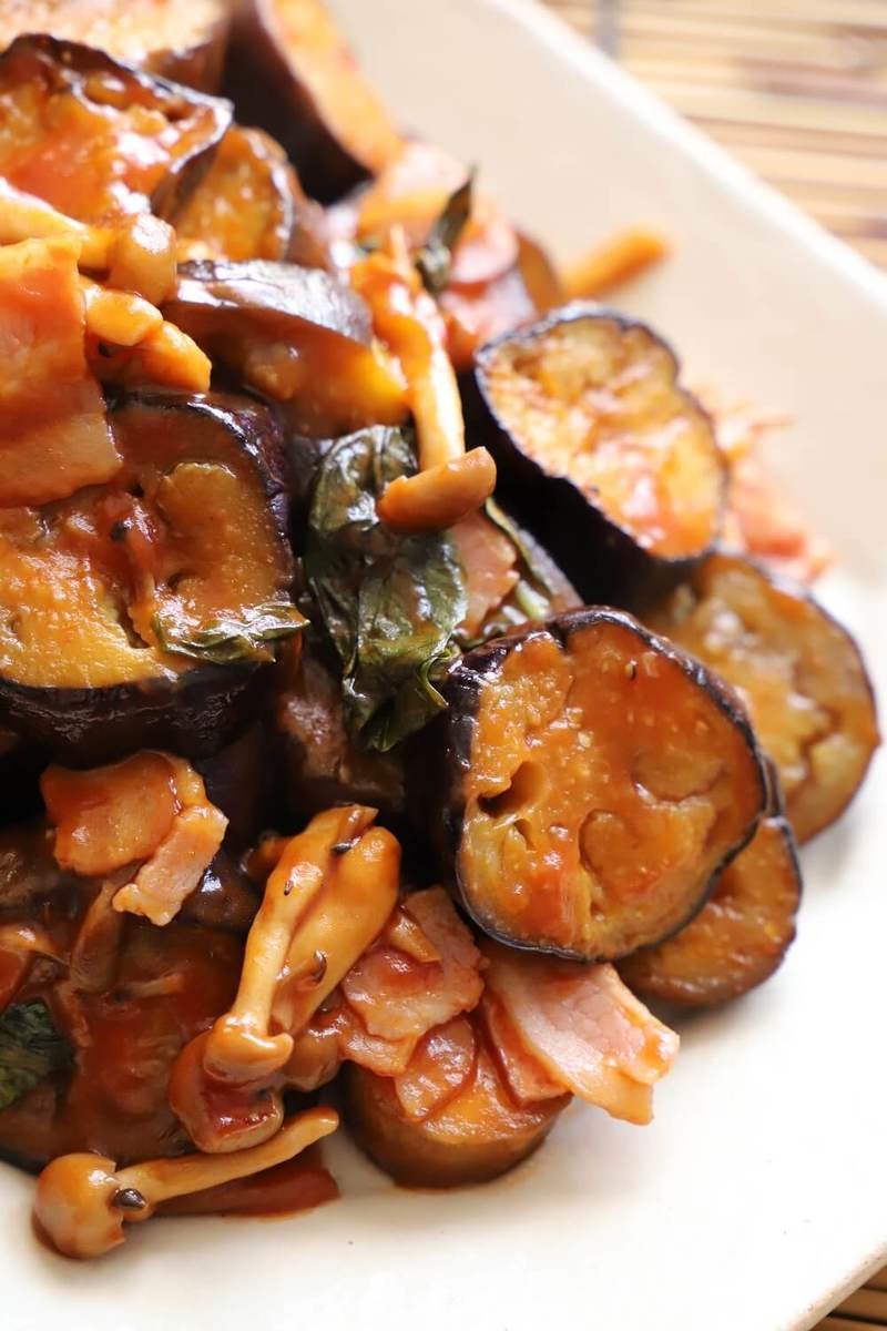 ベーコンとしめじの旨味にケチャップが加わり、茄子ともさらに好相性です!