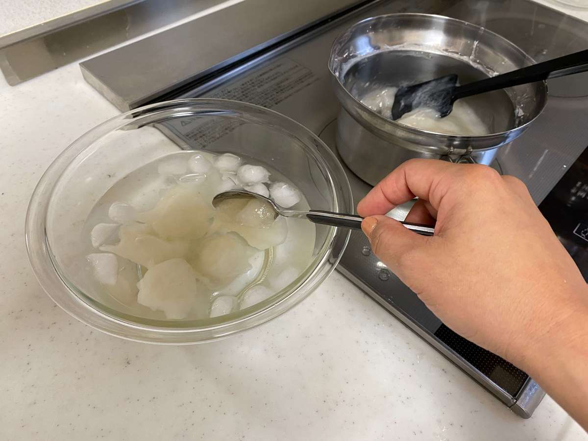 食べやすいサイズにスプーンなどですくって、氷水で冷やせばすぐに食べられます。