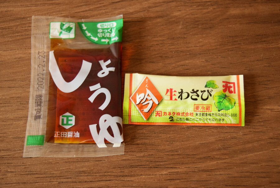 ちゃんと「しょうゆ」と「生わさび」が別添えされているのが、地味に嬉しい。
