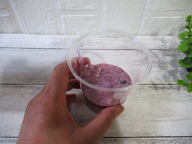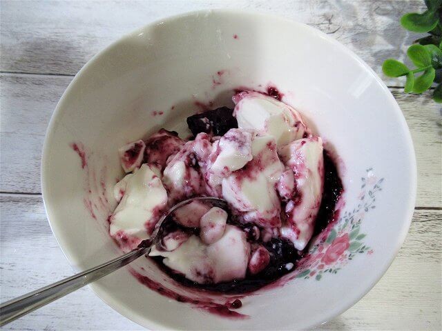 ちなみに、個人的にはブルベリージャムを多めに入れるとさらに甘さが増しておいしくなっておすすめです。