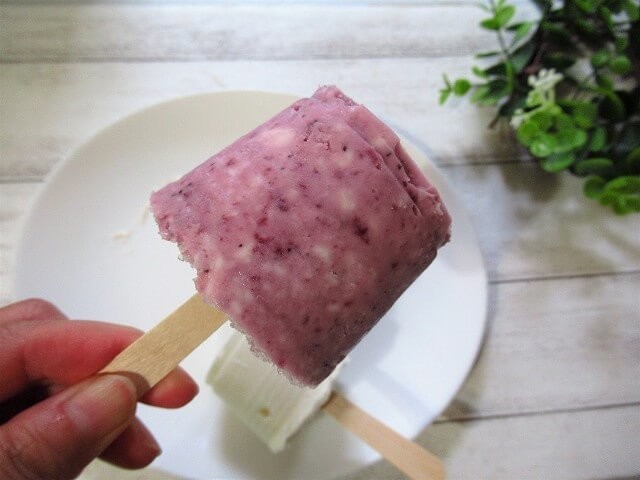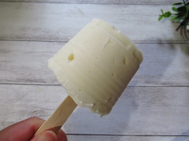 味は業務スーパーのレアチーズのままですが、凍らせただけなのにお店で売っているレアチーズ系のアイスに変身します。