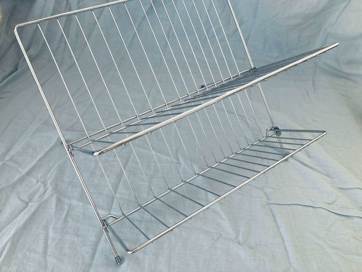 スリコの「折りたたみ水切りラック」は、小さな見た目からは想像もできない収納力があり、5人家族の我が家でも大満足でした。