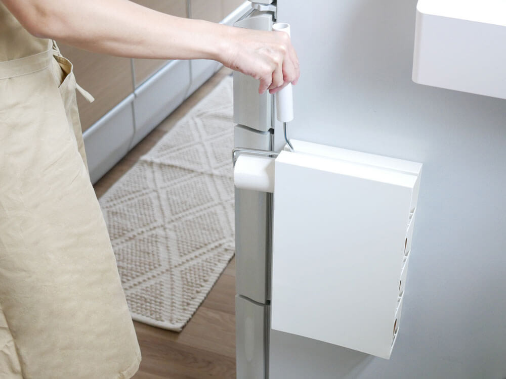 ローラーは左右どちらからでも、出し入れしやすいストレスフリーな設計。 どちらからでも出し入れできるので設置場所を選ばず、どこに設置しても快適にお使いいただけますよ♪