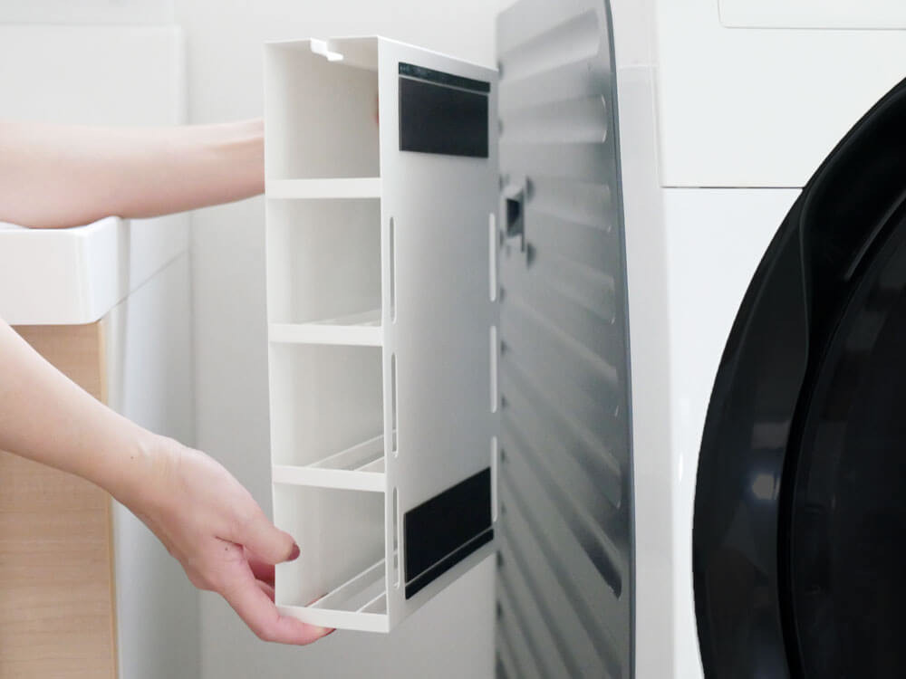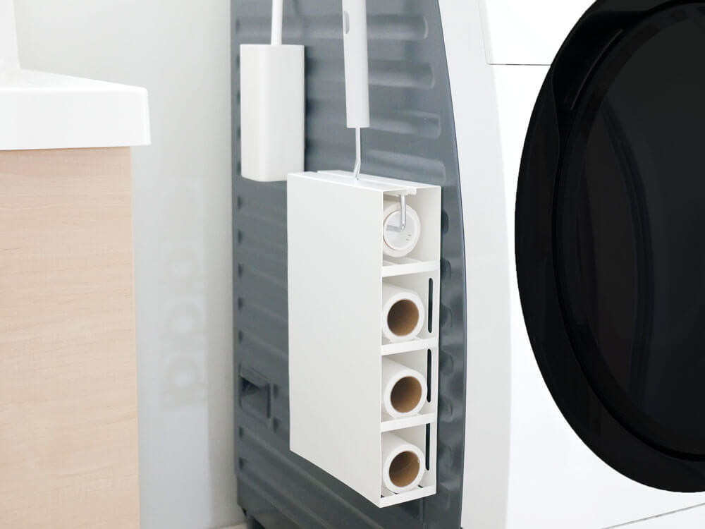 スリムなので邪魔にならず、洗濯機横や冷蔵庫横の隙間、家具と家具の隙間など、今までデットスペースだった場所を収納場所としてお使いいただけます♪