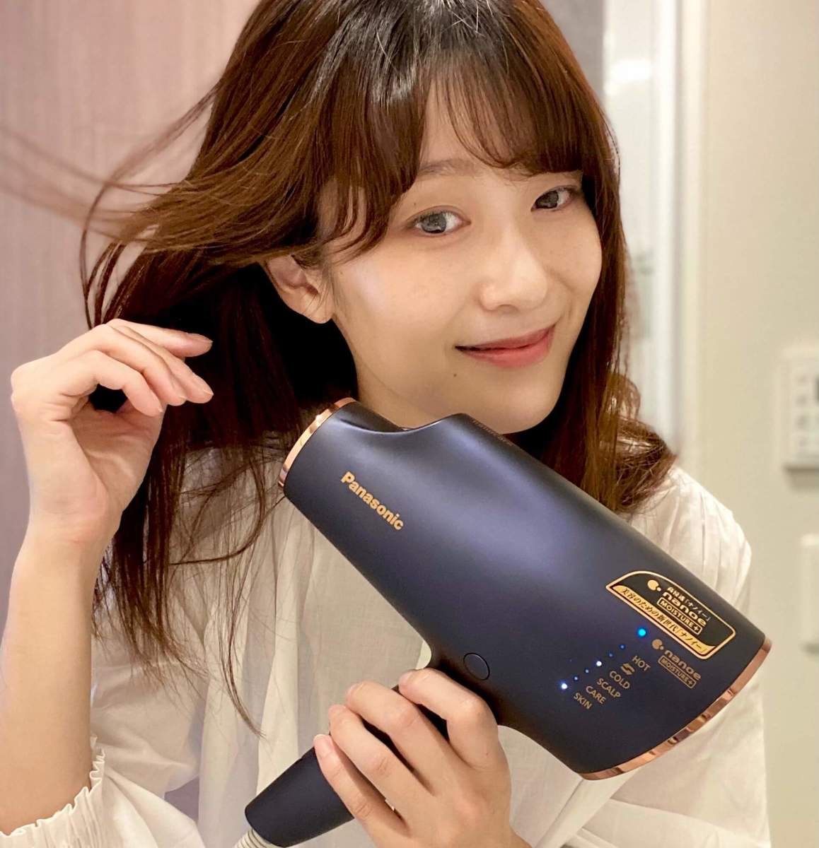子どもが触れるので、育児中はお出かけ以外でヘアケア剤やスタイリング剤をできるだけ使いたくない、というt_h_h_tさん。自然としっかりまとまる髪になりたい!と借りたのは、「Panasonic へアードライヤー ナノケア EH-NA0E-A」。