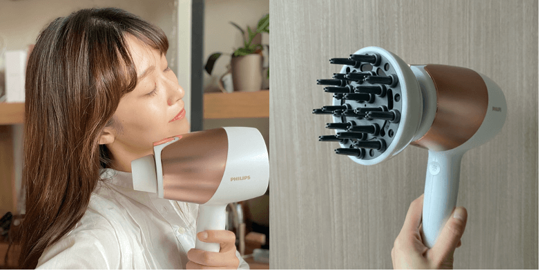 頭皮ケアを含めたヘアケアができる機能が人気のPHILIPS。髪の温度をセンサーで感知し、髪の個性に合わせたぴったりの最新機種です。速乾、スタイリング、カールと用途ごとに使い分けができ、スカルプノズルを付ければ頭皮のケアも可能。