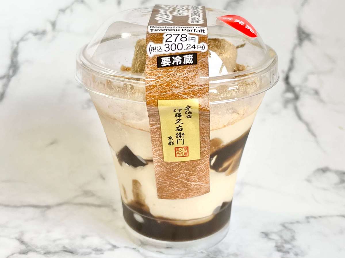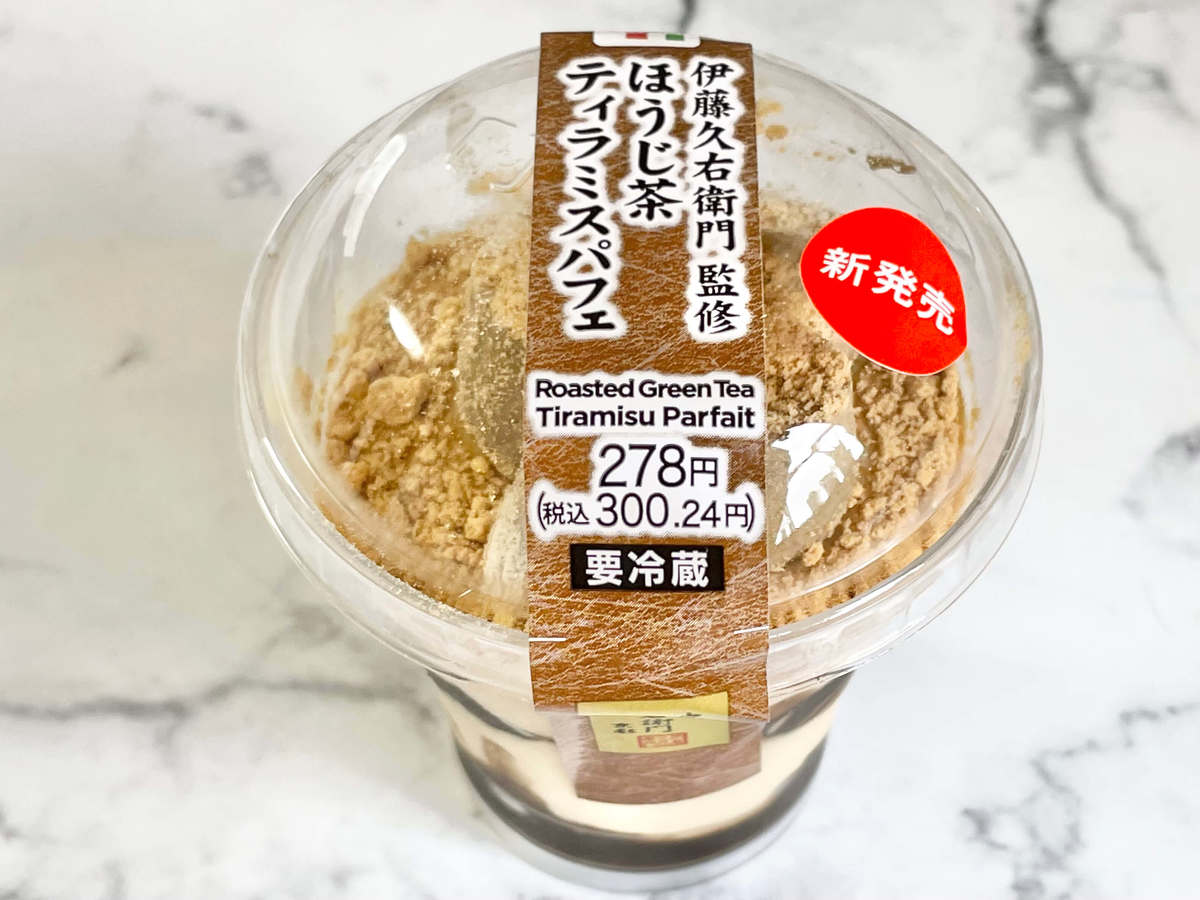 セブンイレブンで購入できる「伊藤久右衛門監修 ほうじ茶ティラミスパフェ」を紹介しました。