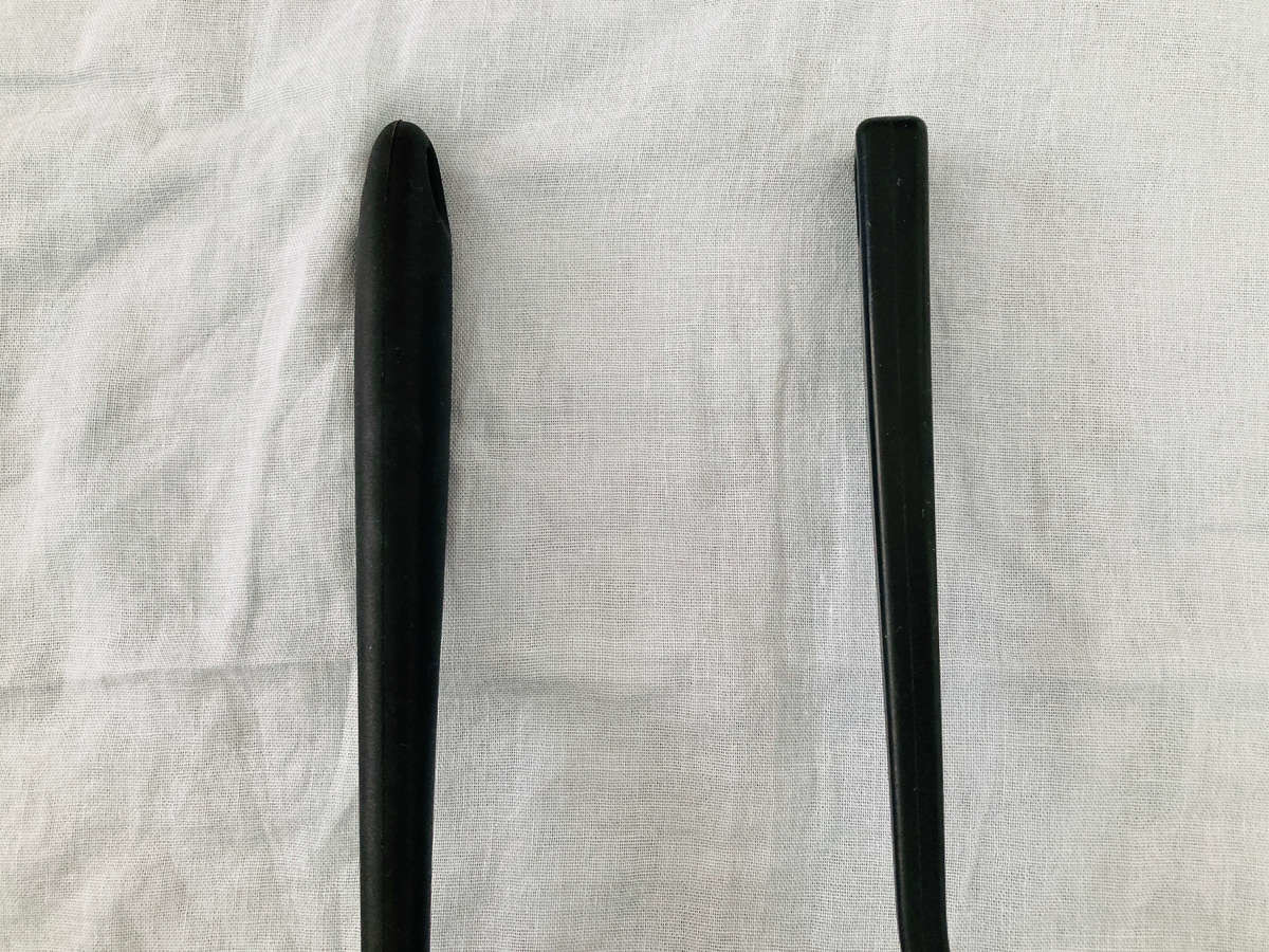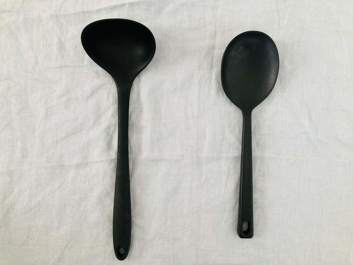 無印良品の「シリコーン調理スプーン」と並べてみました。微妙な色の違いや持ち手のデザインの違いがありますが、黒一色のデザインに統一感があります!