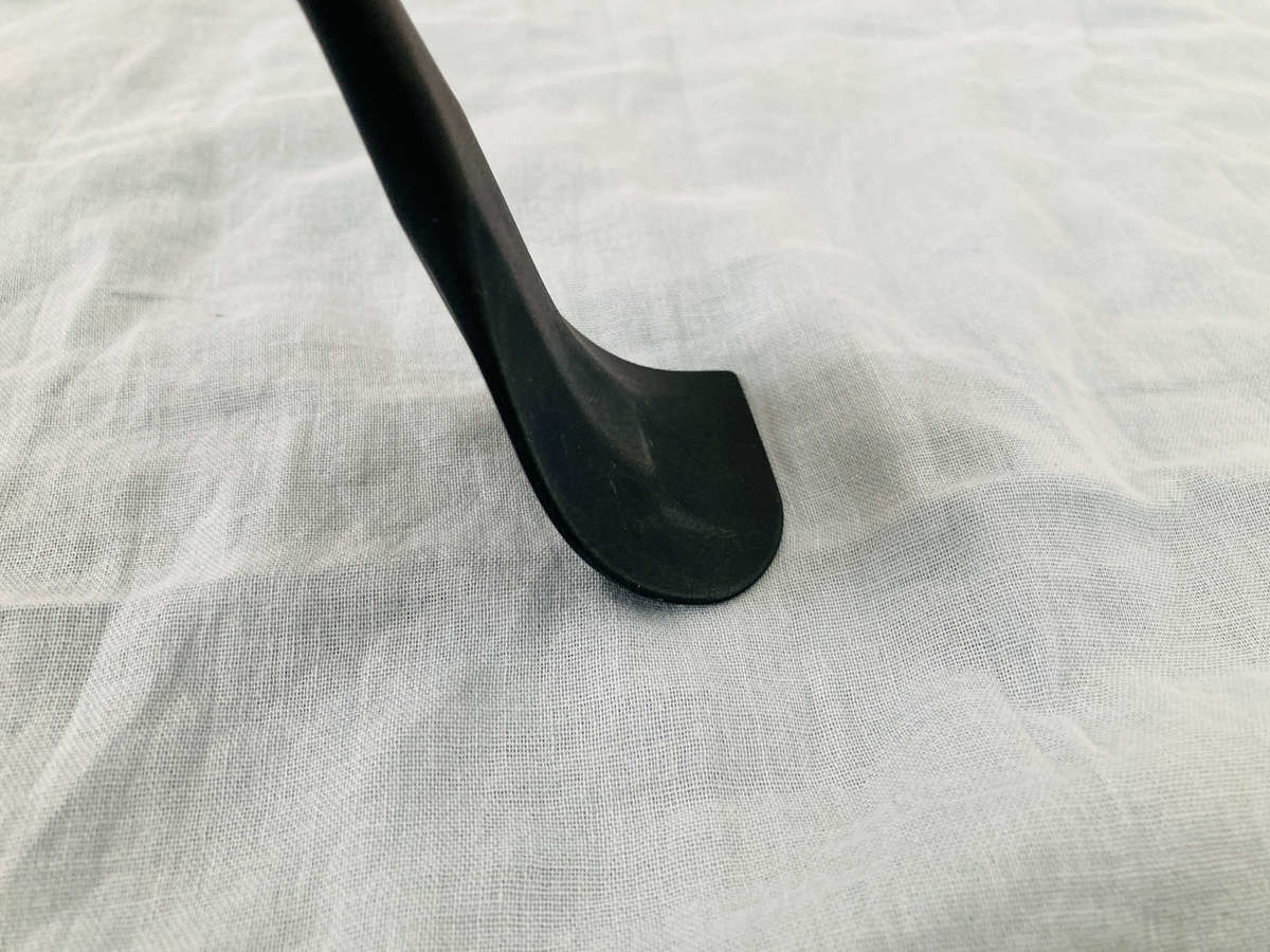 柔らかさがポイントとなるヘラは、薄手でこんなに曲がります!すでにシリコン製のヘラは持っていましたが、購入時の価格は倍以上でした(泣)。