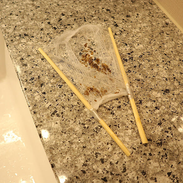 ・即席ゴミ取りネット(割りばし+キッチン用排水口ネット)
