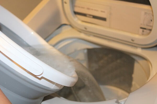 溶かしたオキシクリーン水を洗濯槽に注ぎ入れます。