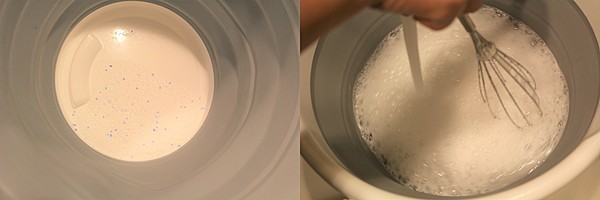 2:溶かしたオキシクリーンを洗濯槽に注入