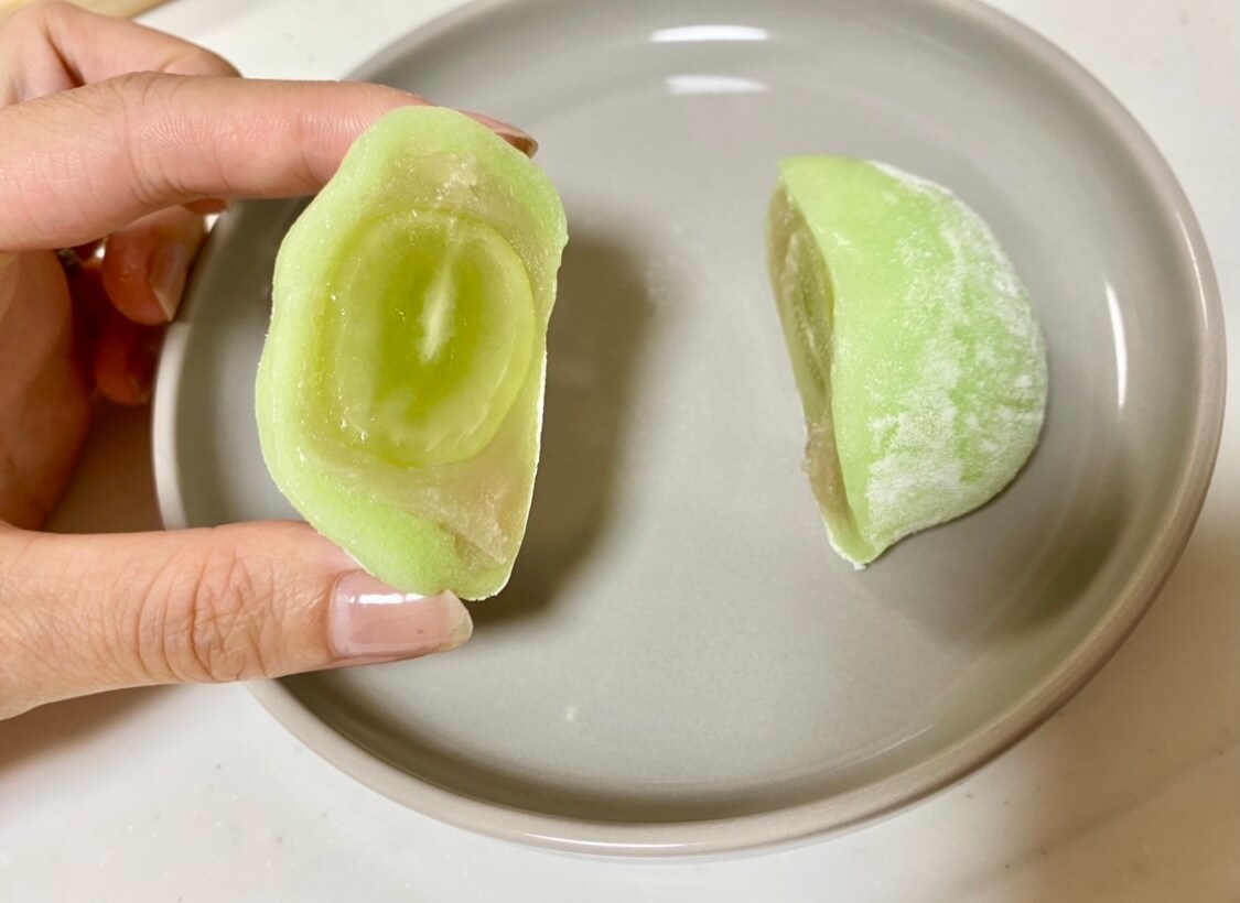 優しい甘さの白あんと、シャインマスカットの爽やかさがマッチしていました!お茶菓子としてはもちろん、辛口ワインのおともなど、おしゃれなおつまみにもなりそうな予感……♪
