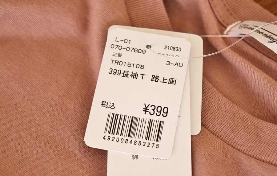 外着でも恥ずかしくないようなシンプルデザインの長袖Tシャツが399円(税込)で販売されていました。