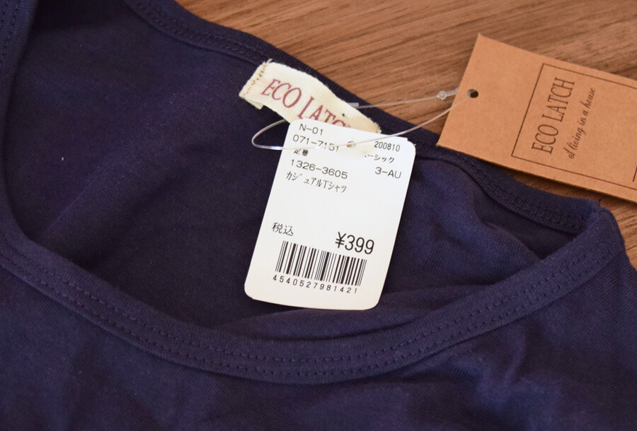 他にもボーダー柄や白・黒など無地の長袖も399円(税込)でした。長袖で399円(税込)は、かなり安いと思いました。室内着として十分使えます。