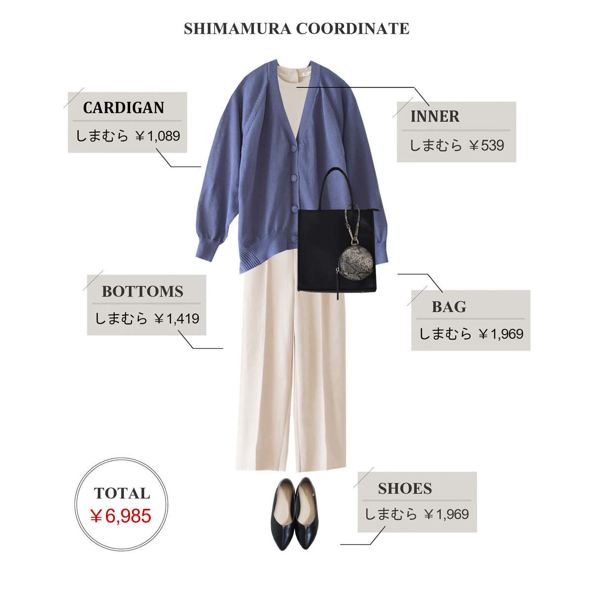 - カーディガン:しまむら 1,089円(512-0734)