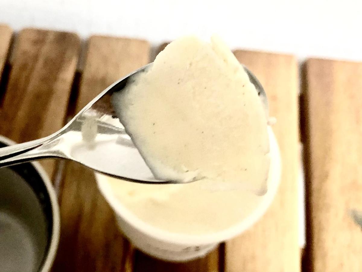 味は濃厚で、高級アイスクリームに迫ある味。バニラ風味が口に残り、また次々と食べたくなってしまいます。