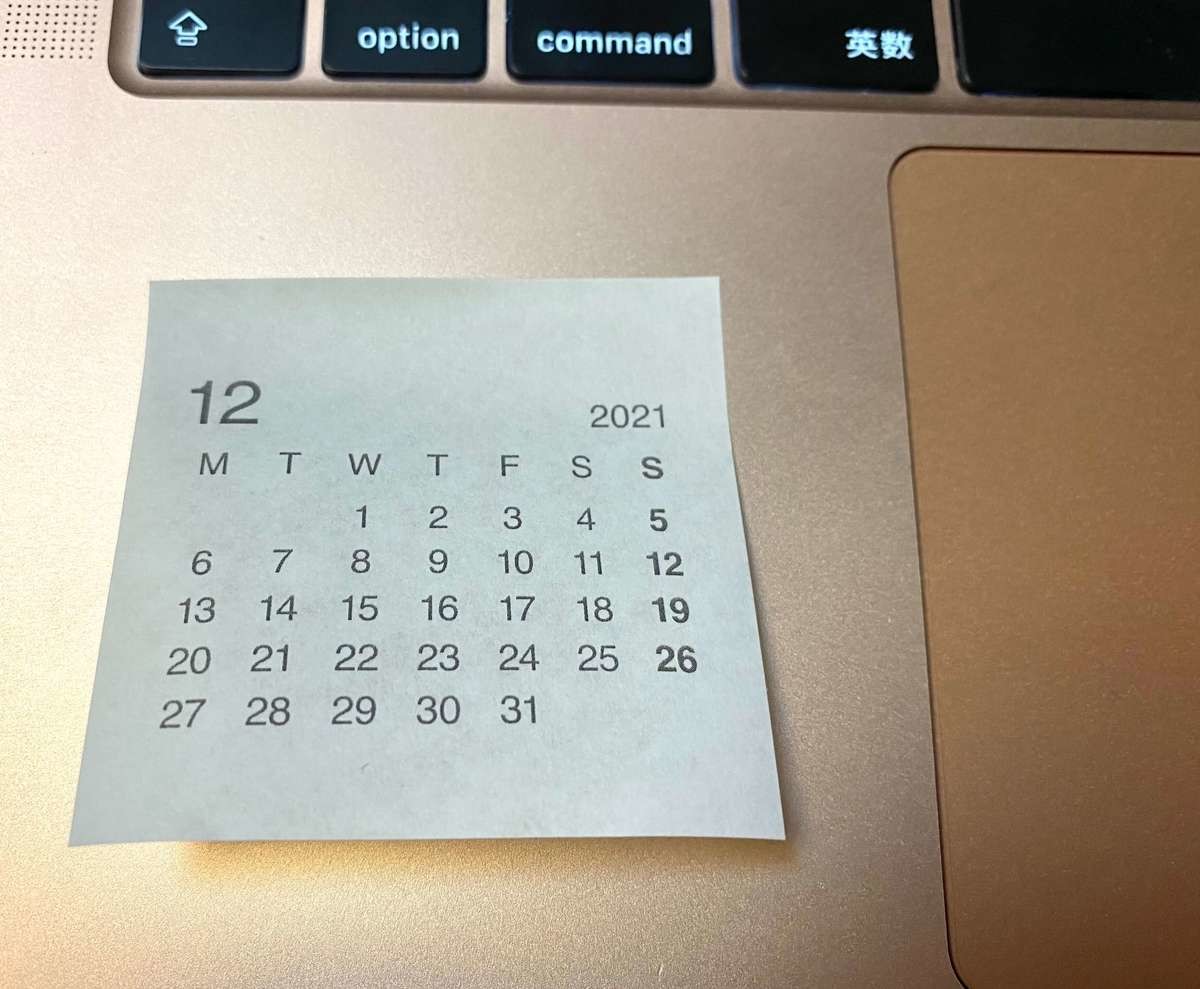 こちらは筆者が購入したカレンダー付箋紙で、サイズは約55×53mmとかなり小さめです。