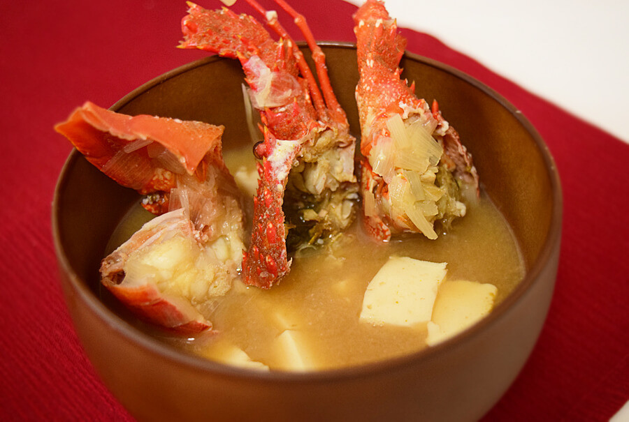 ロブスターの味噌がお味噌汁に溶け込んで、味わい深くなっています。急遽白米も追加しました。