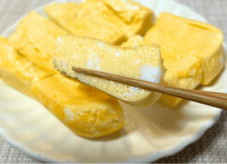 こちらもバニラアイスを使い、少ない材料で作れるケーキです。やさしい甘さのさつまいもと、アクセントの効いたクリームチーズは相性バツグン。材料を混ぜて、あとはオーブンにまかせて焼けば完成です。(調理時間:3分※作業時間のみ)