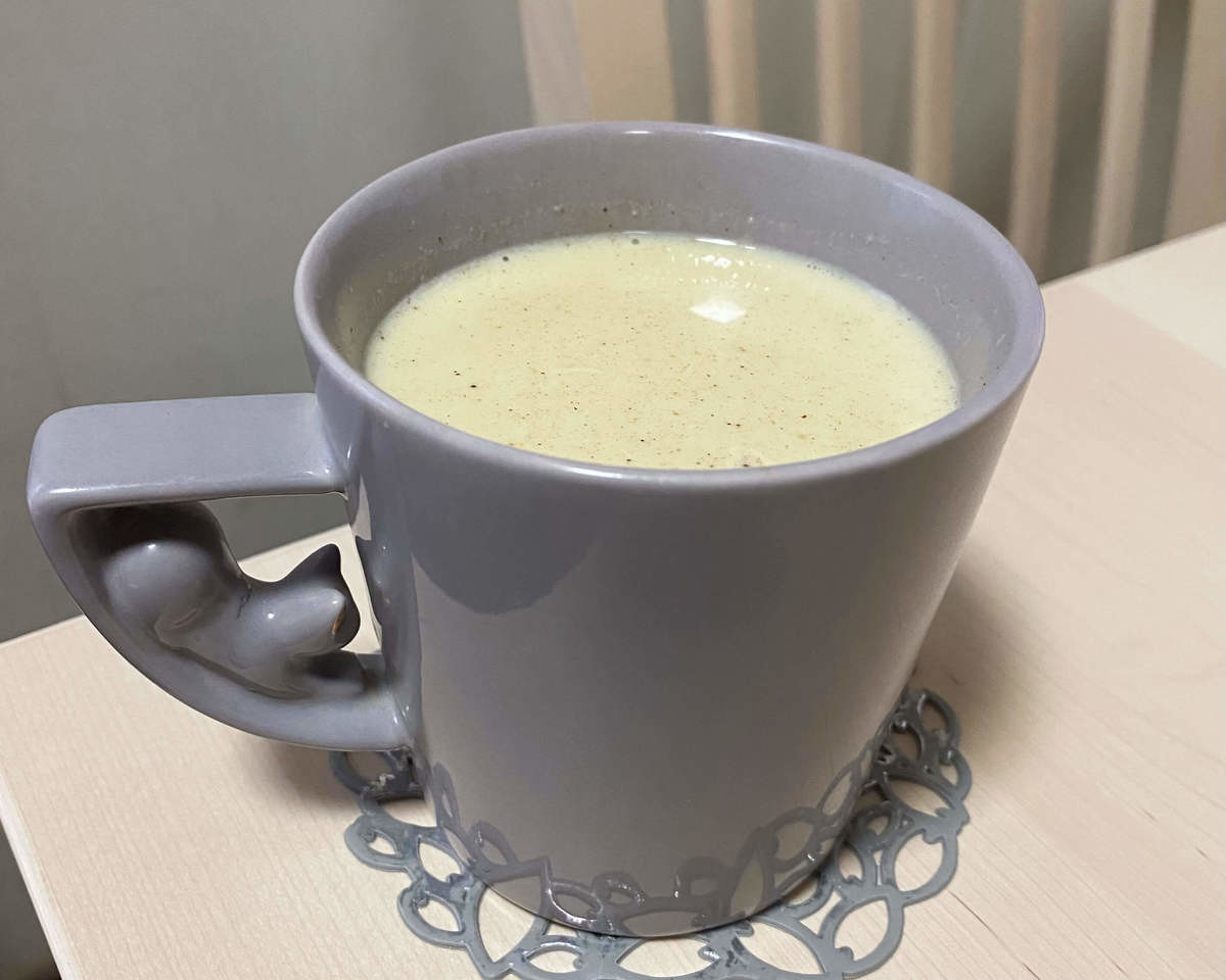 見た目も一気にクリーミーになり、味も変化!もともとの香ばしい味と豆乳の風味の相性が抜群で、「ラテ」感が増しました。