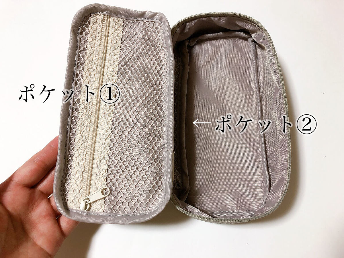 ポーチを開けると、網目状のポケットが2つ付いています。中身が見やすくて◎!