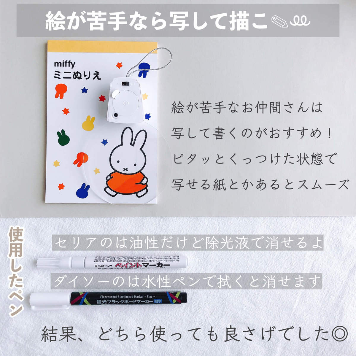 私は100均で購入できるミッフィーの塗り絵を使用しました。