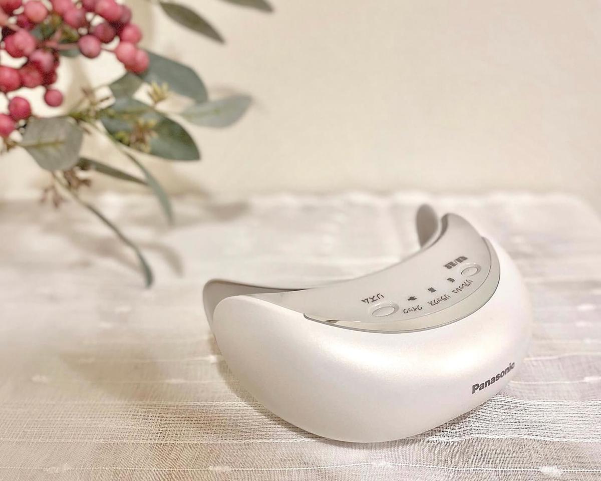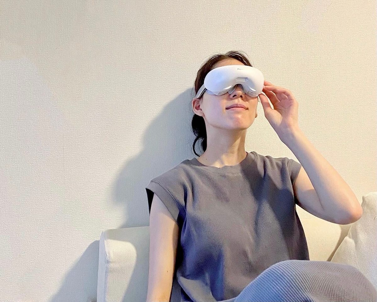 そこで、おうちでの「すきま時間」や「夜の一人時間」に手軽にリフレッシュしたい!と借りたのが「目もとエステ(Panasonic)」です。じんわりホットスチームが、頑張った目元を癒してくれます。