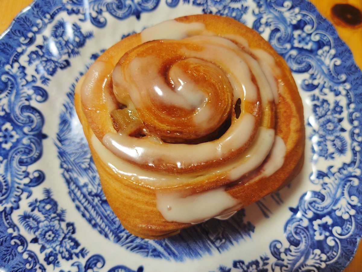 カルディのシナモンロールにアップル味が期間限定で出ています。