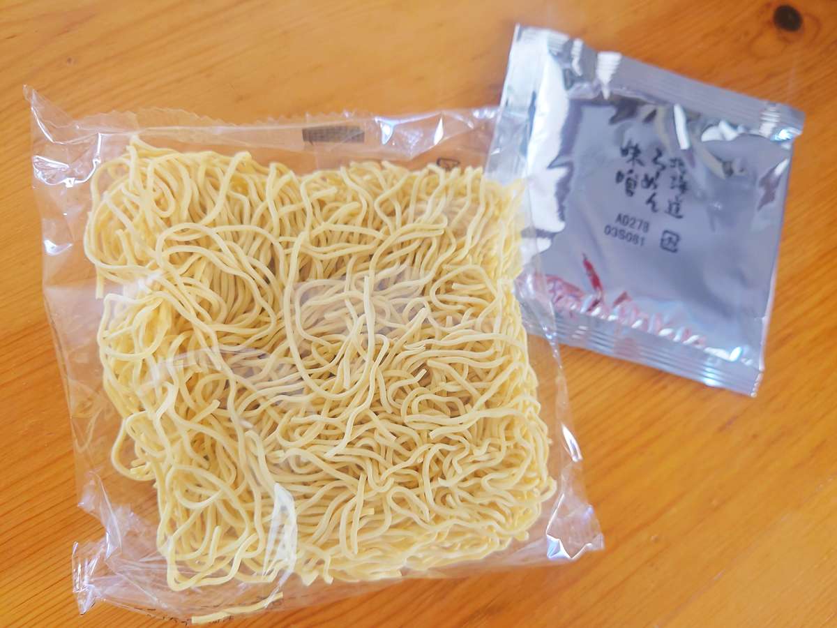 袋から麺とスープを取り出すと、カリカリの細麺とスープの袋が入っていました。